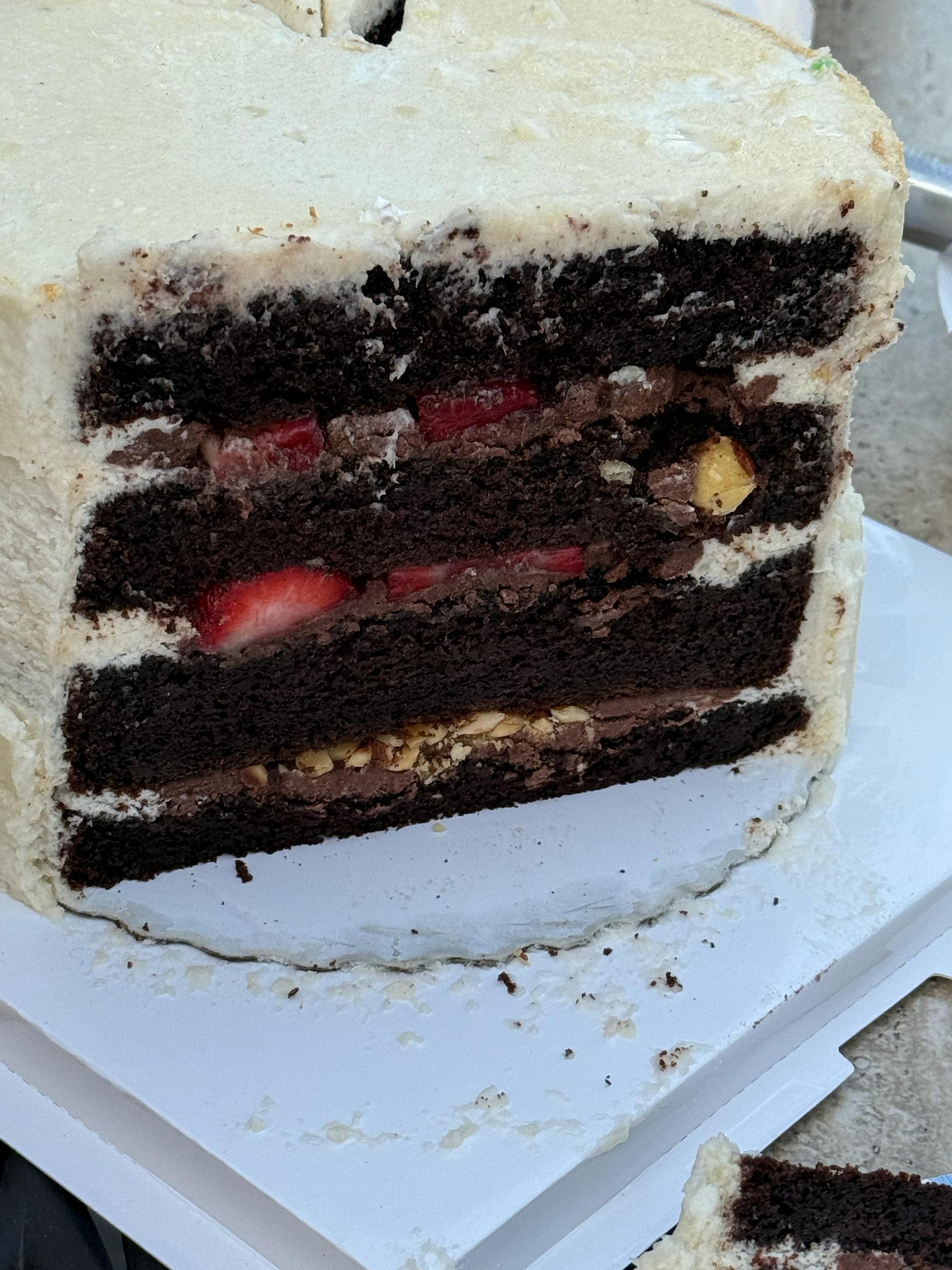 Indulge in pure decadence with our triple chocolate cake, baked to rich perfection and layered with silky Nutella filling. Each bite is elevated with your choice of fresh berries, crunchy nuts, or Croquant – a golden caramel crunch that adds sweetness without the stickiness. Moist, luxurious, and irresistibly smooth, this cake is the perfect balance of chocolate intensity and delightful textures.